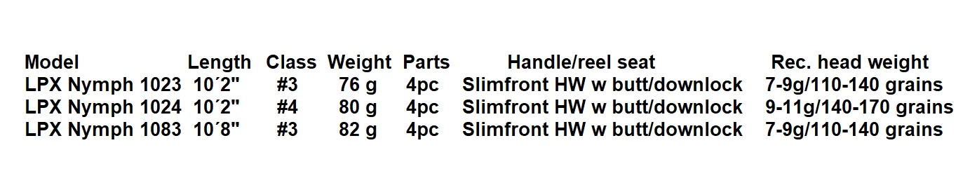 Guideline LPX Nymph 10’2” #4: This rod is for largest fish and the demand for more power to fight these effective. Yet, it still has good protection of fine tippets and great sensitivity.