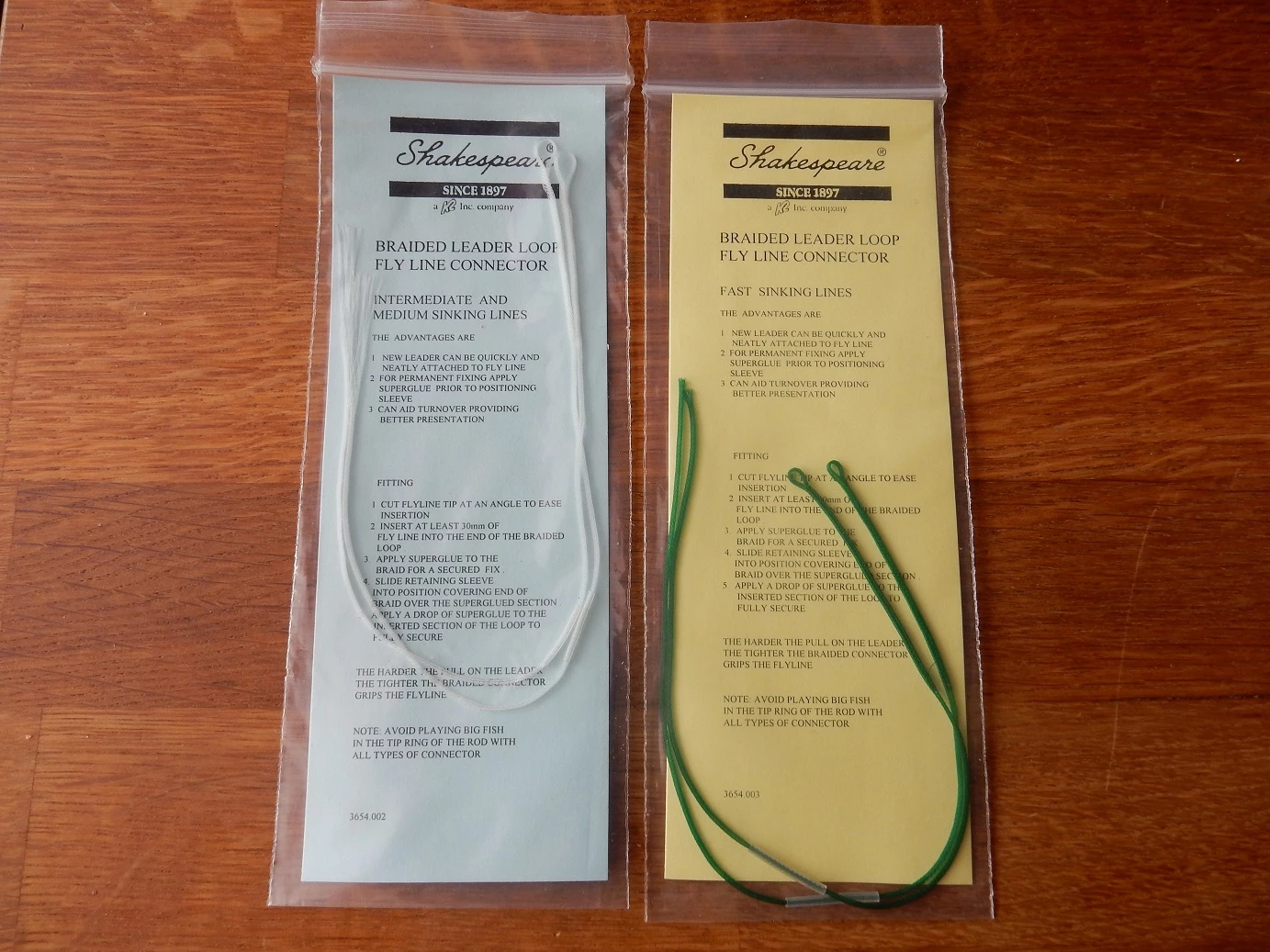 Shakespearen pitkiä looppeja perhosiimaan, paketissa 2kpl looppeja. Kirkas looppi on Intermediate/Medium Sinking -siimoille ja tumman vihreä looppi on Fast Sinking -siimoille. Sopii #2-7 luokan siimoille.