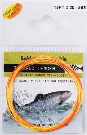 Uusi, täysin ilman muistia oleva nymph -peruke. Toimii myös Tenkara kalastuksessa. Väri vaihtuu 5-8cm välein oranssin ja fl.keltaisen väreihin.