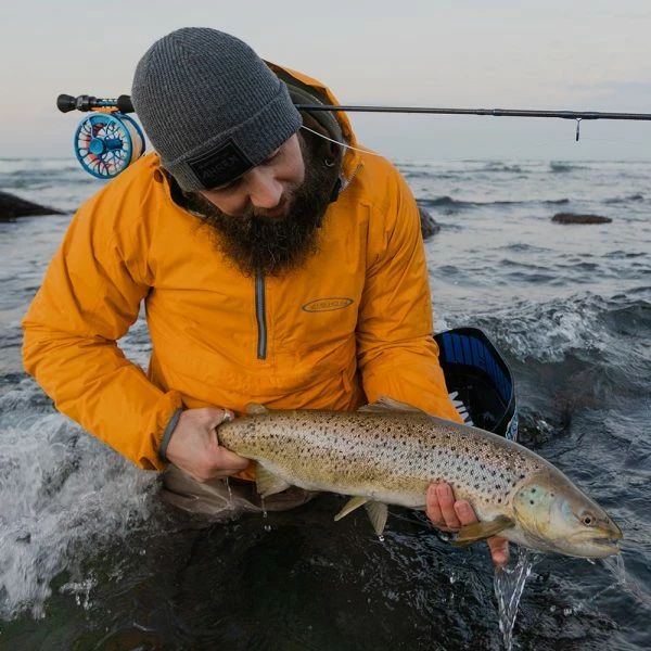 Super light anorak for fishing and after fishing activities. Made from a 2.5 layer Rip Stop Nylon. The simple construction allowed us to make this super light and as this packs into small it is easy to throw in a pocket of your fishing bag so it’s always with you when the rain finds you. Big belly pocket has a smaller mesh pocket inside for your phone or accessories and there is also a accessory loop for smaller items.